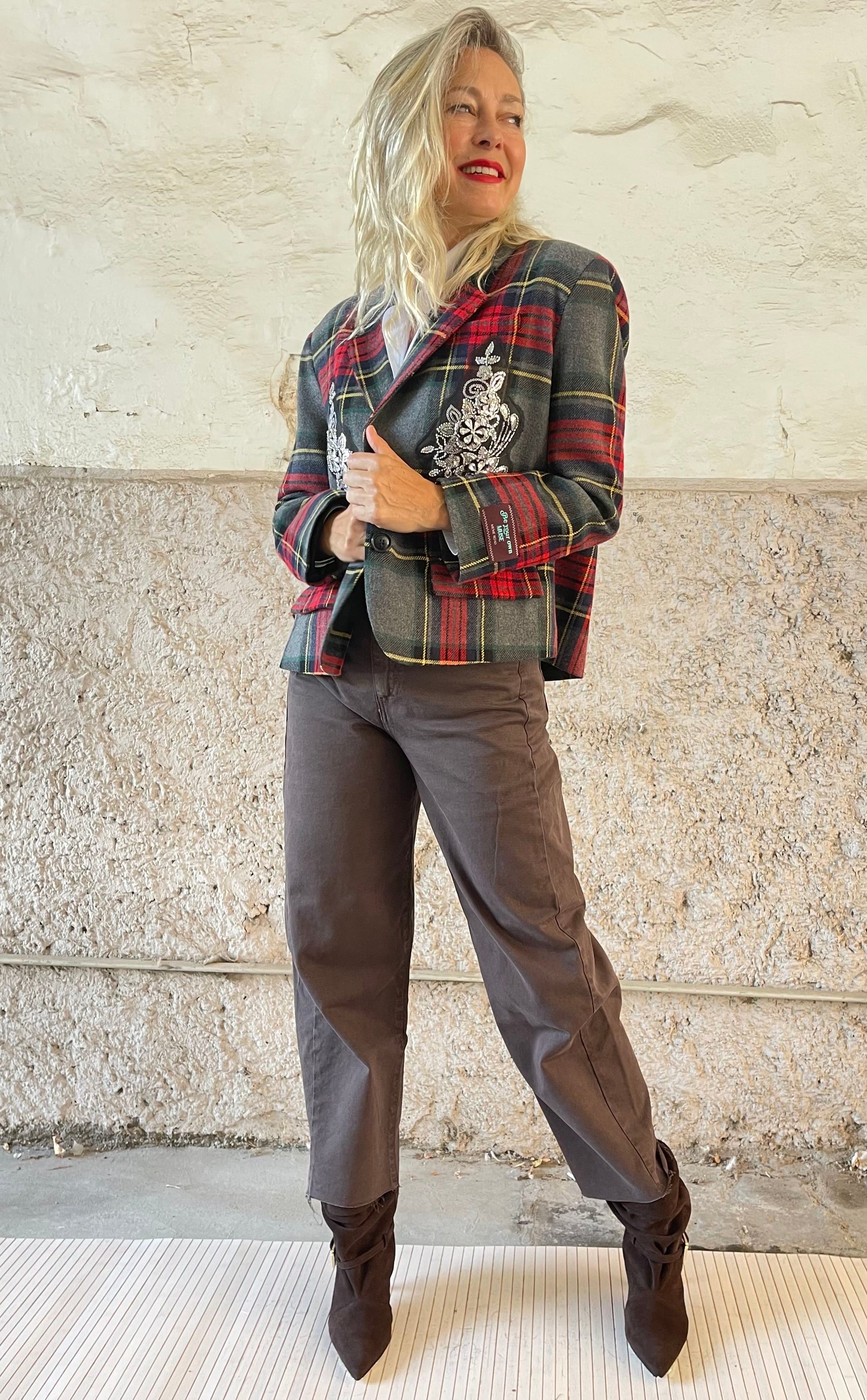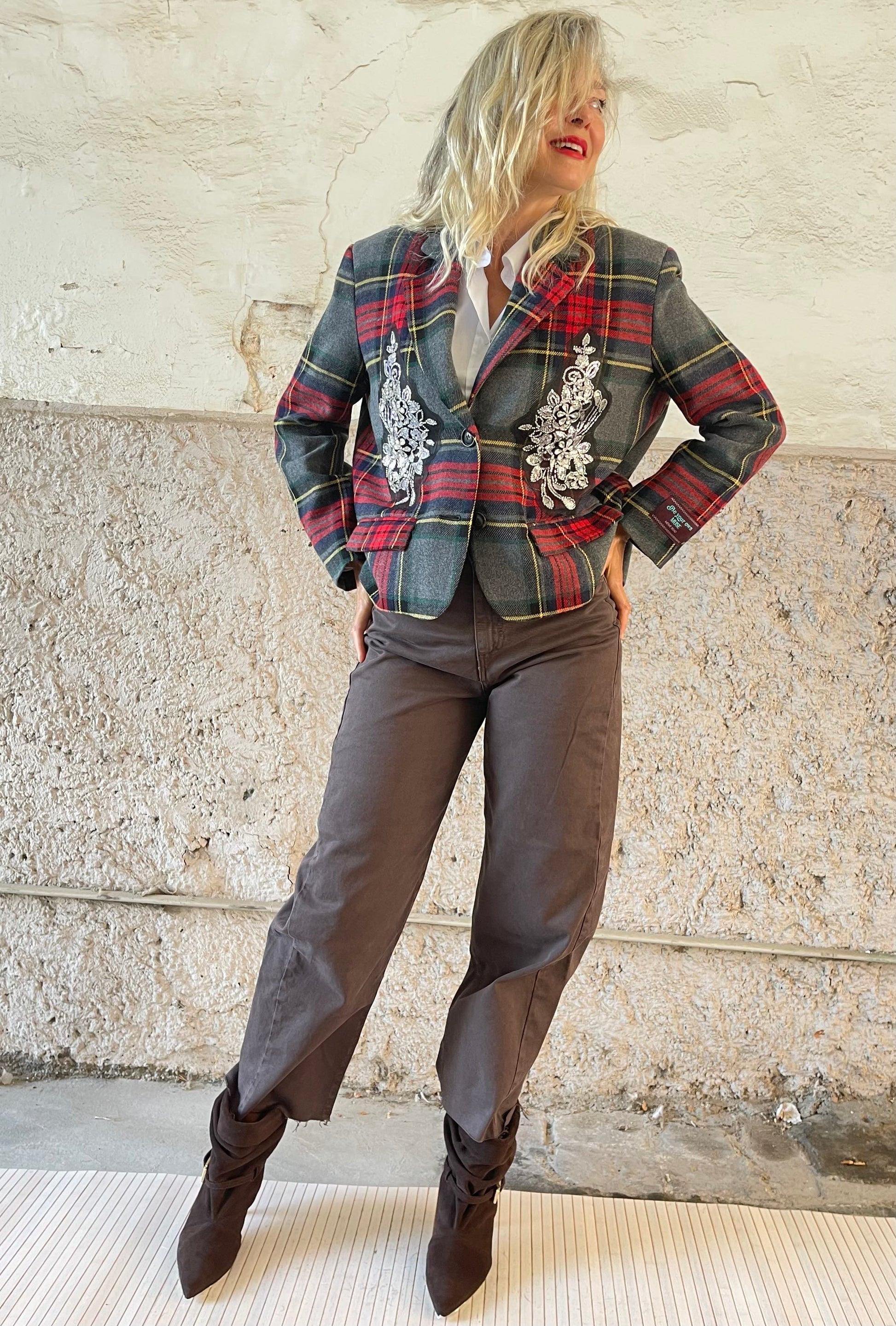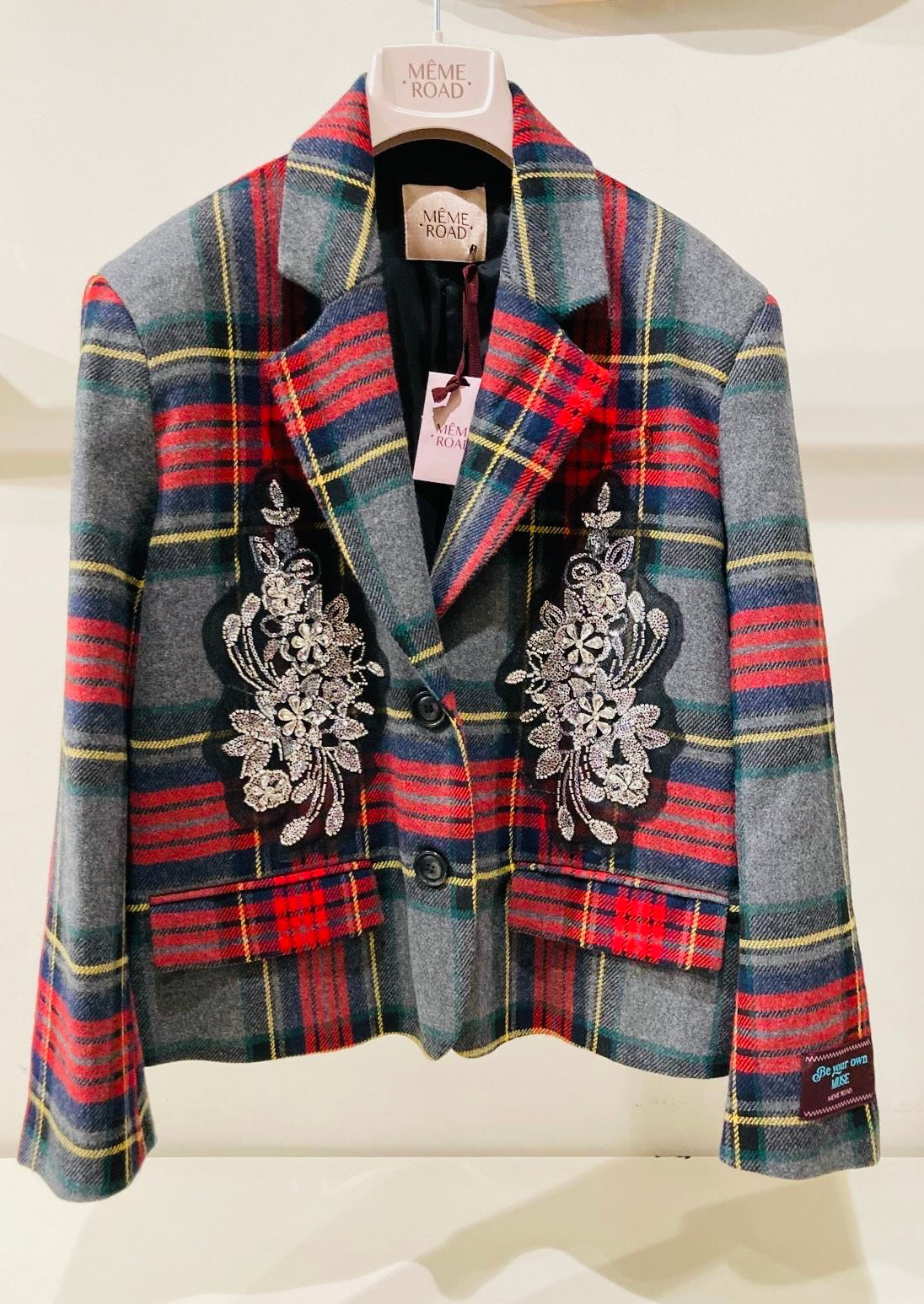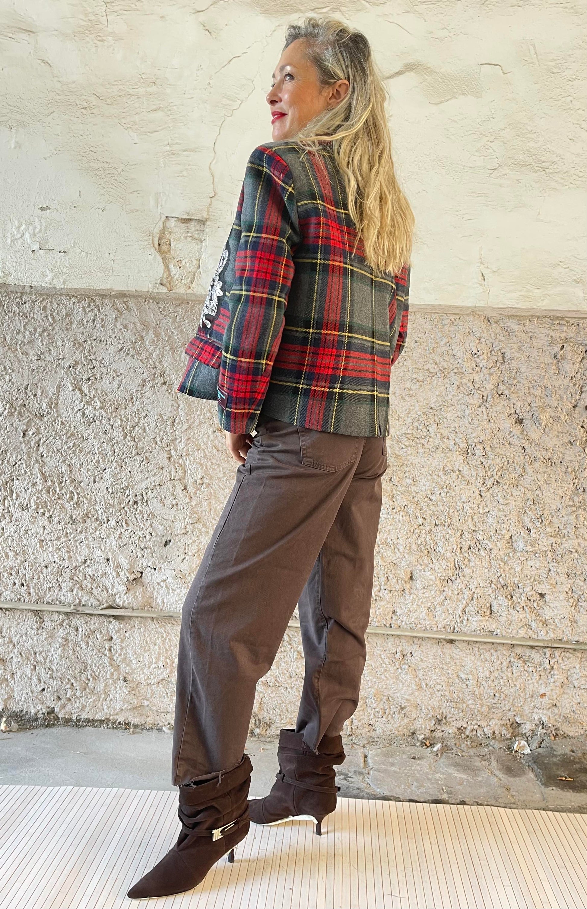 Giacca con taglio dritto in fantasia Tartan con applicazioni