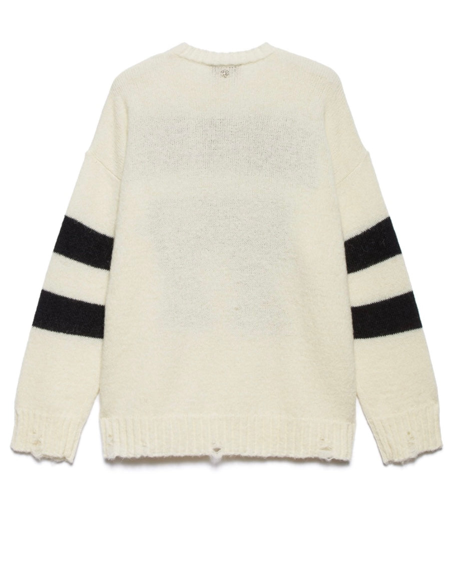 IL MAGLIONE BRYANT PRENDE IN PRESTITO I CODICI DEL MONDO VARSITY E LI RIBALTA CON UN’ESTETICA DISINVOLTA E GRAFFIANTE. IL LOGO JACQUARD E LE MANICHE A RIGHE SI COMBINANO CON I BORDI DISTRESSED PER UN EFFETTO VISSUTO CHE PARLA DI LIBERTÀ, PERSONALITÀ E ZERO COMPROMESSI.