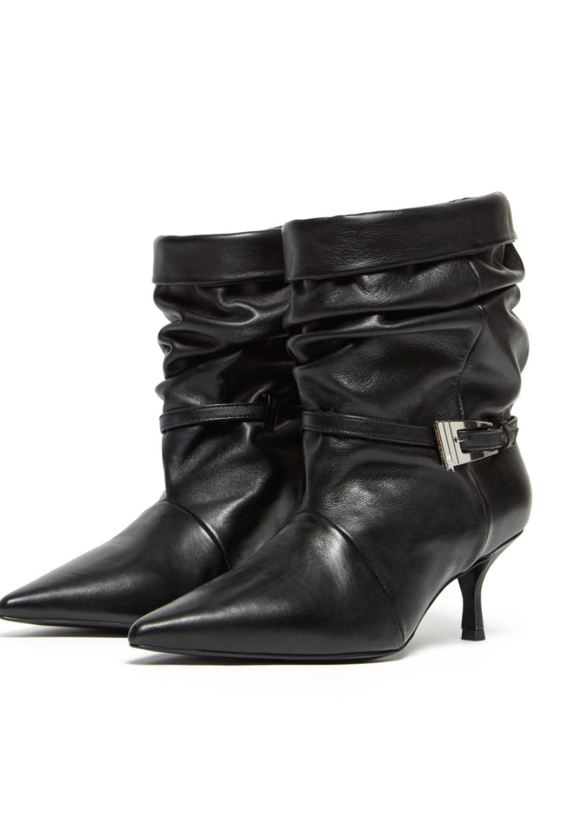 GLI STIVALETTI YUNA RISCRIVONO LE REGOLE DELL'ELEGANZA URBANA. IL DESIGN SLOUCHY IN MORBIDA PELLE ABBRACCIA LA CAVIGLIA E IL CINTURINO CON FIBBIA REGOLABILE AGGIUNGE UN TOCCO EDGY. LA PUNTA AFFUSOLATA E IL TACCO KITTEN DONANO SLANCIO E FEMMINILITÀ.